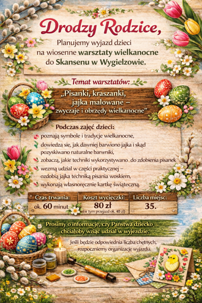 Wyjazd na warsztaty wielkanocne do Skansenu w Wygiełzowie dla starszaków